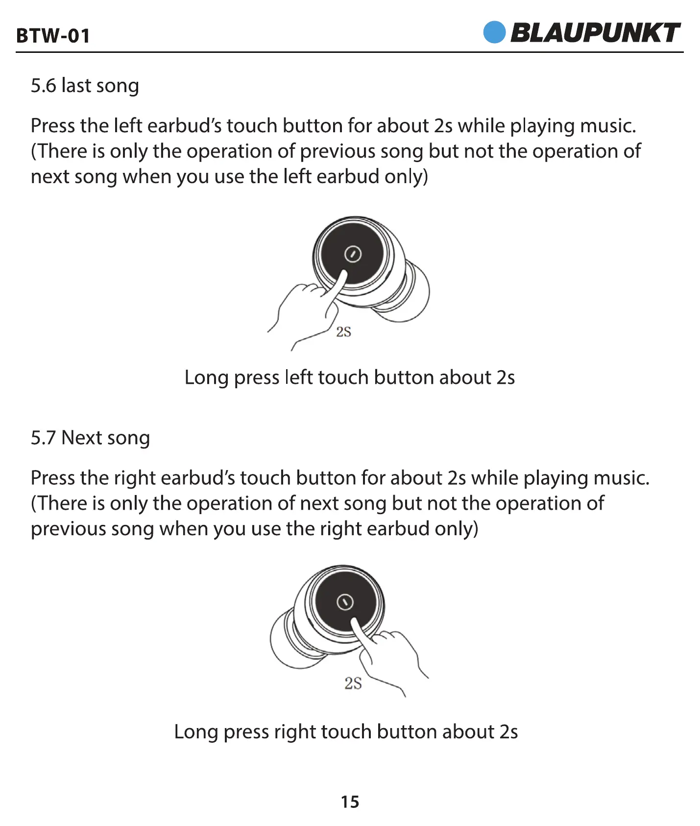 next song when you use the left earbud only)