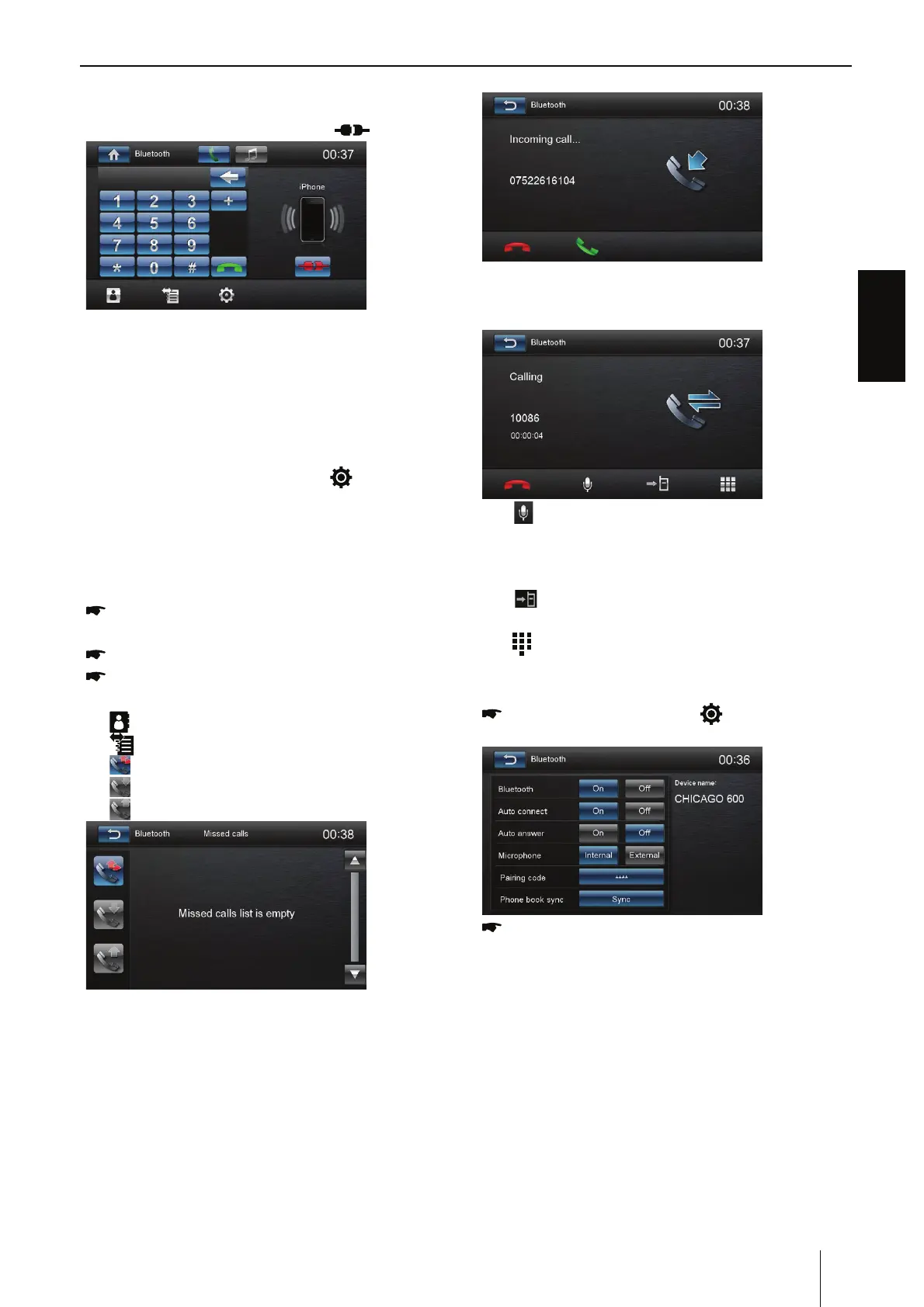 ∙ [Bluetooth]: To turn on or off “Bluetooth”