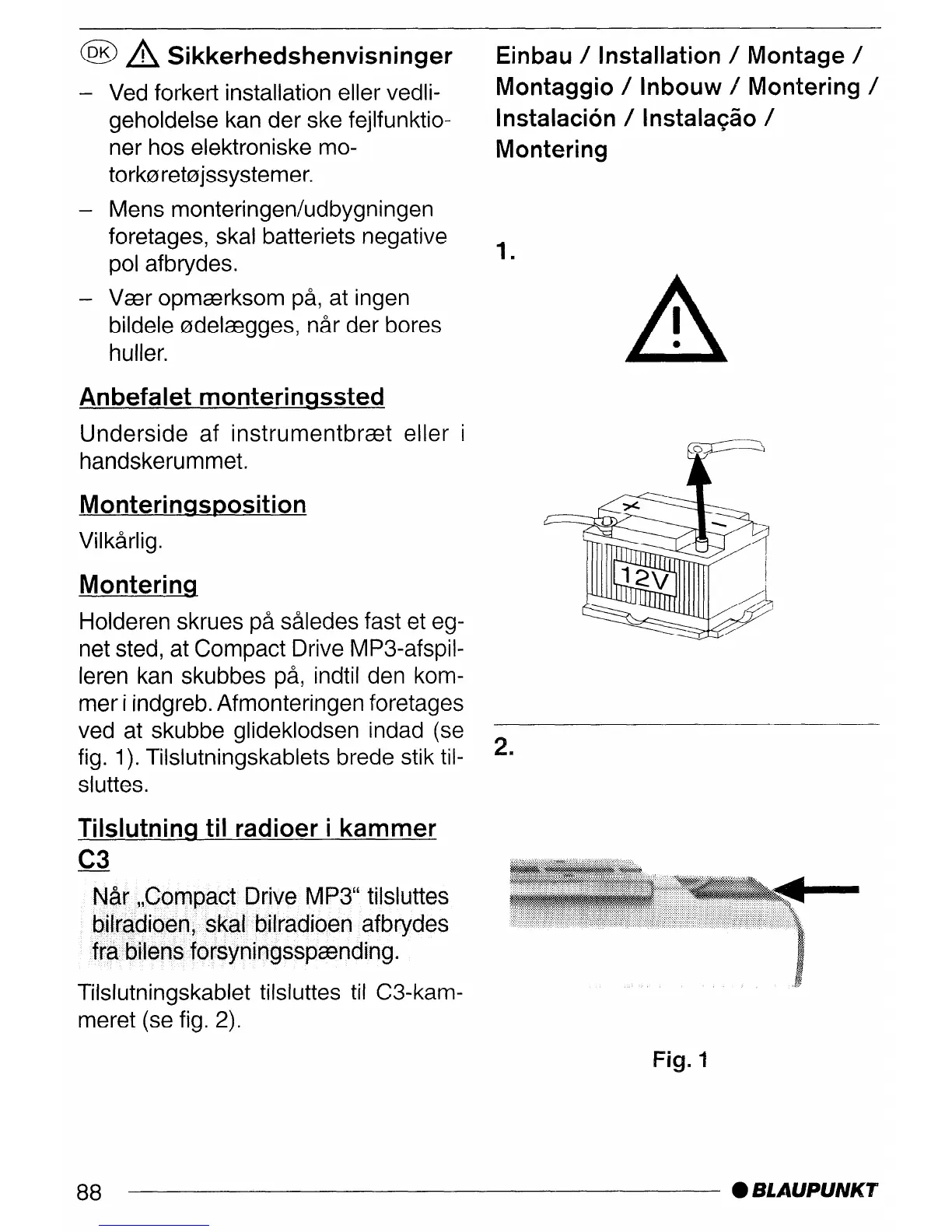 fig. 1). Tilslutningskablets brede stik til-