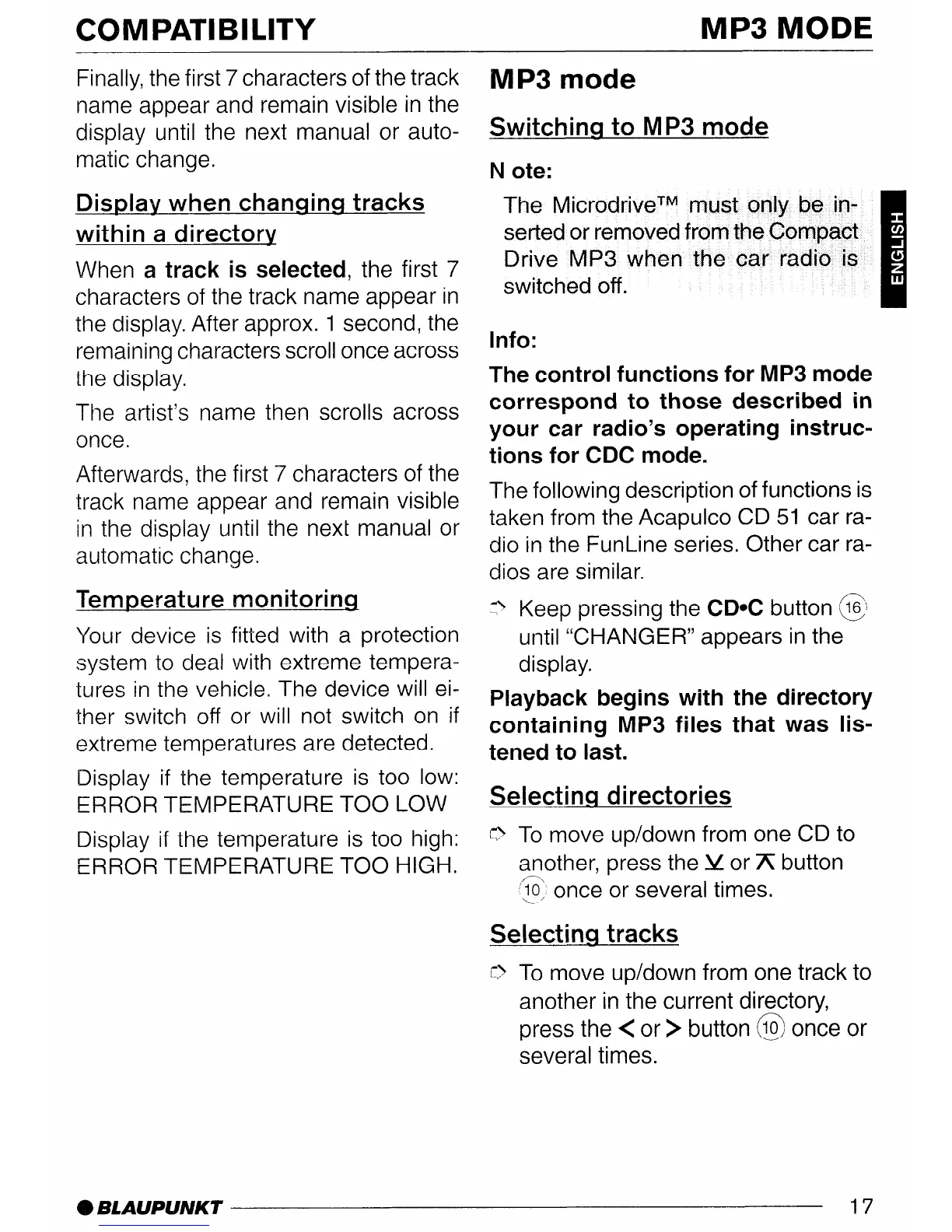 The control functions for MP3 mode