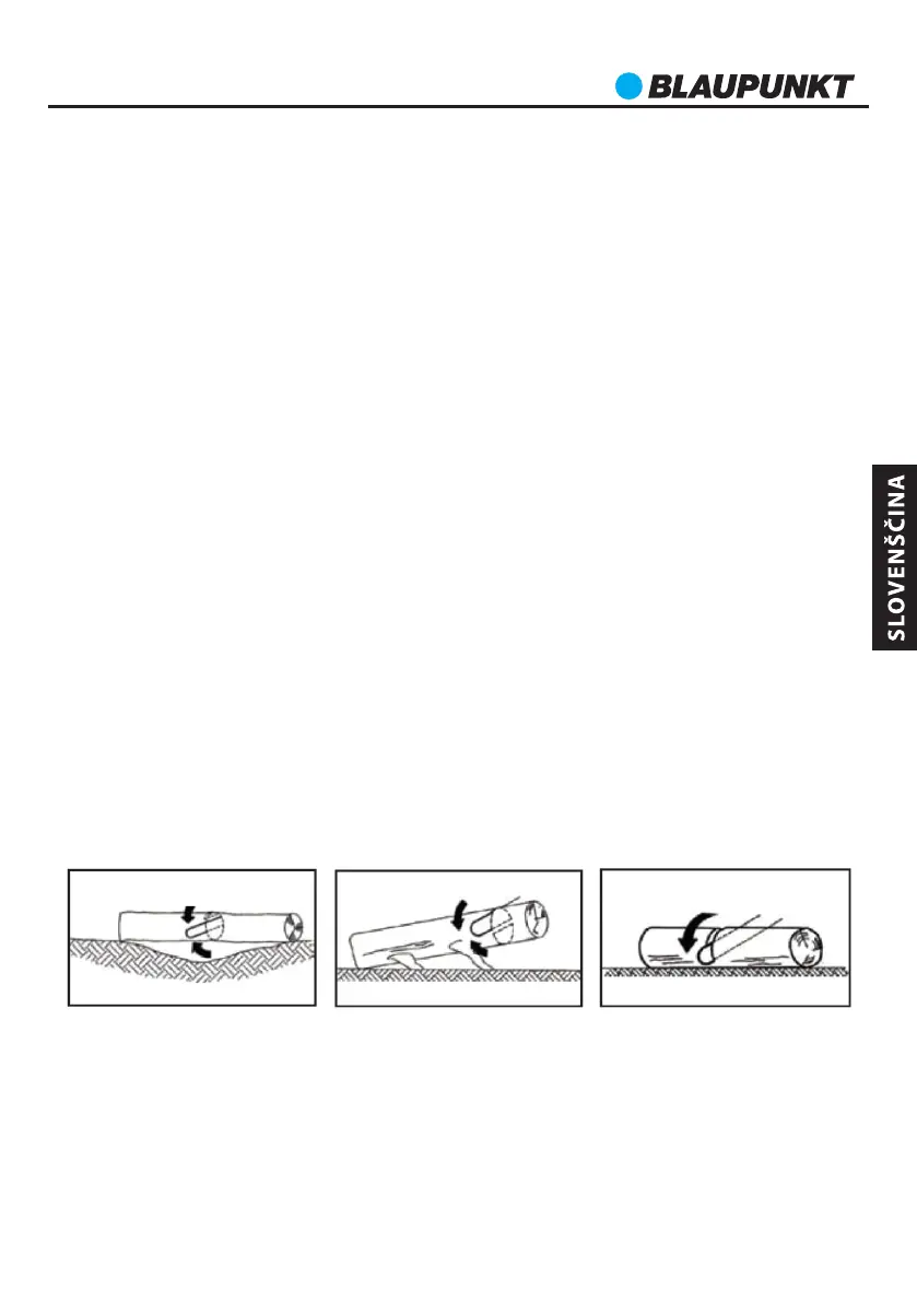 Vedno si zagotovite zanesljivo podlago. Ne stojte na ležečih deblih dreves. Pazite,