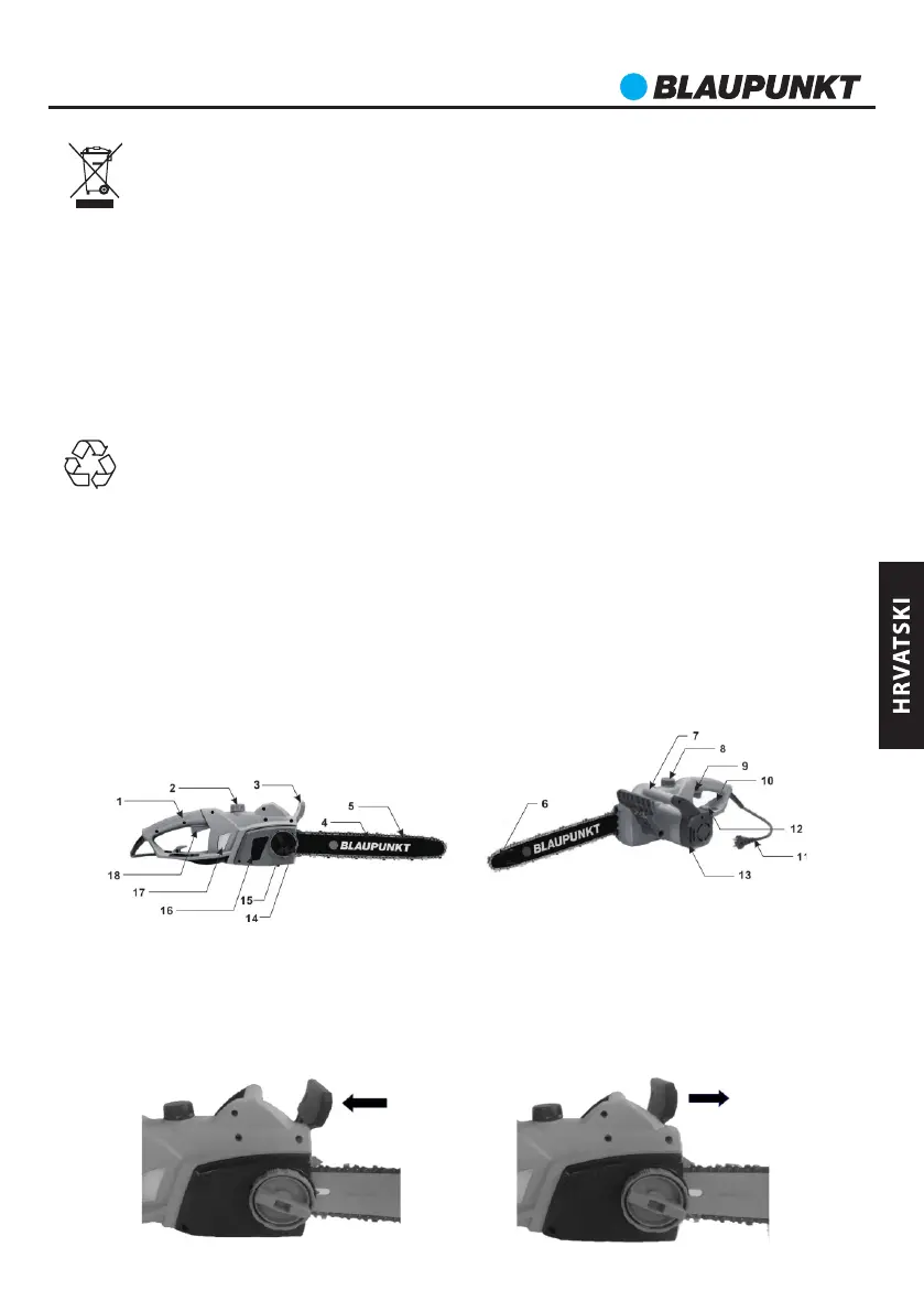 Prije svake uporabe pile provjerite rad kočnice lanca pomicanjem poluge prema naprijed.