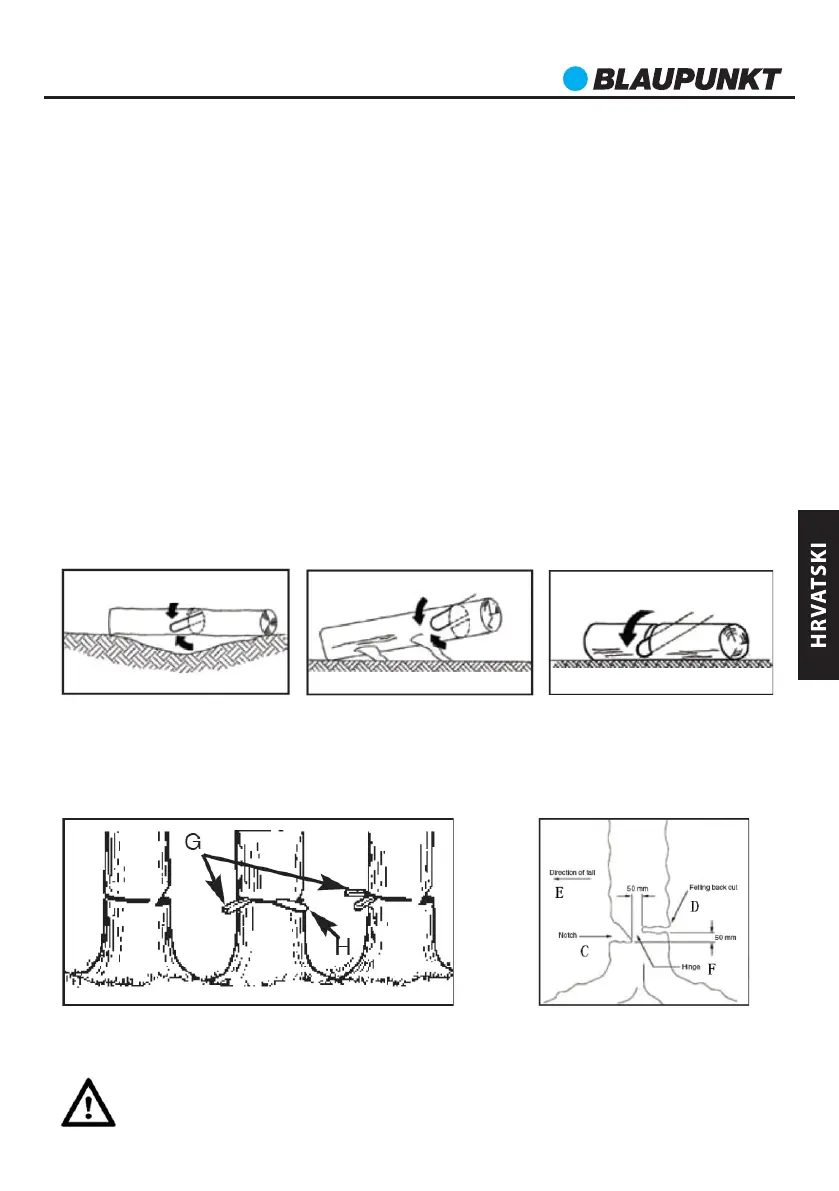 Nategnute grane treba piliti prema gore odozdo kako bi se spriječilo zaglavljivanje šipke pile.