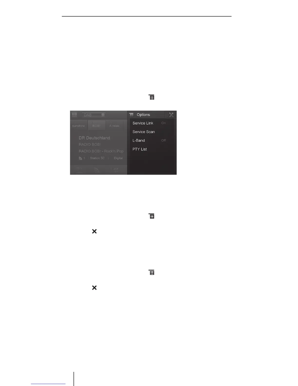 쏅 In the DAB playback menu, press the