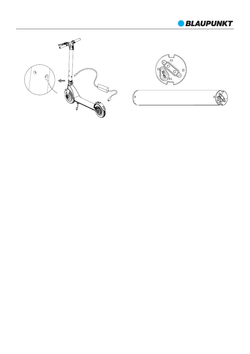 ievietojiet otru adaptera kontaktdakšu skrejriteņa akumulatora uzlādes ligzdā.