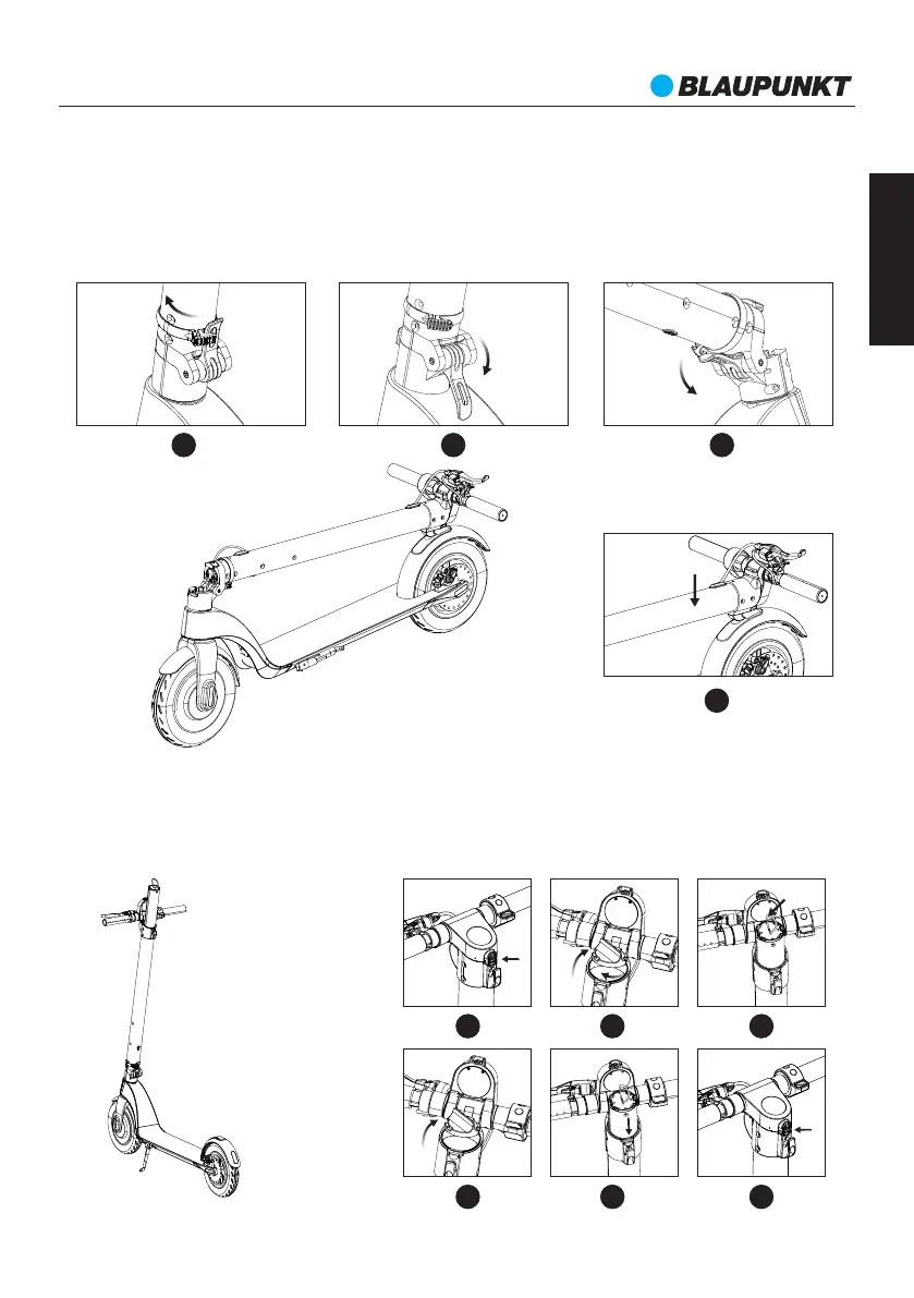 A. Naciśnij tylny błotnik, aby zwolnić blokadę i podnieść drążek kierownicy do pozycji pionowej;