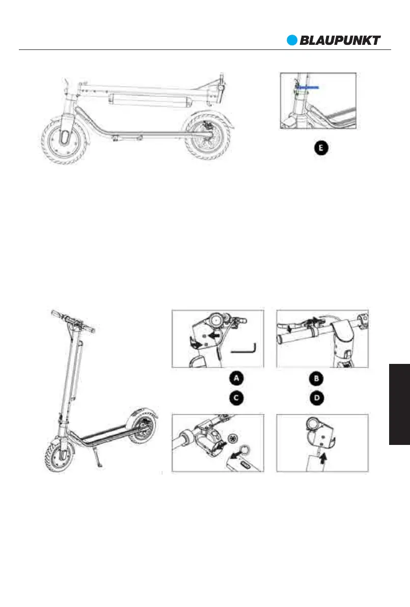 E. За да отстраните хлабините в механизма за сгъване на тротинетката, трябва с помощта на