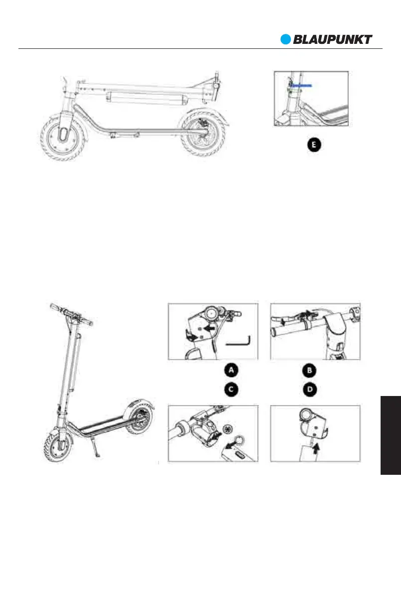 E. Pentru a elimina jocurile din mecanismul de pliere a trotinetei, utilizaţi o cheie pentru a regla