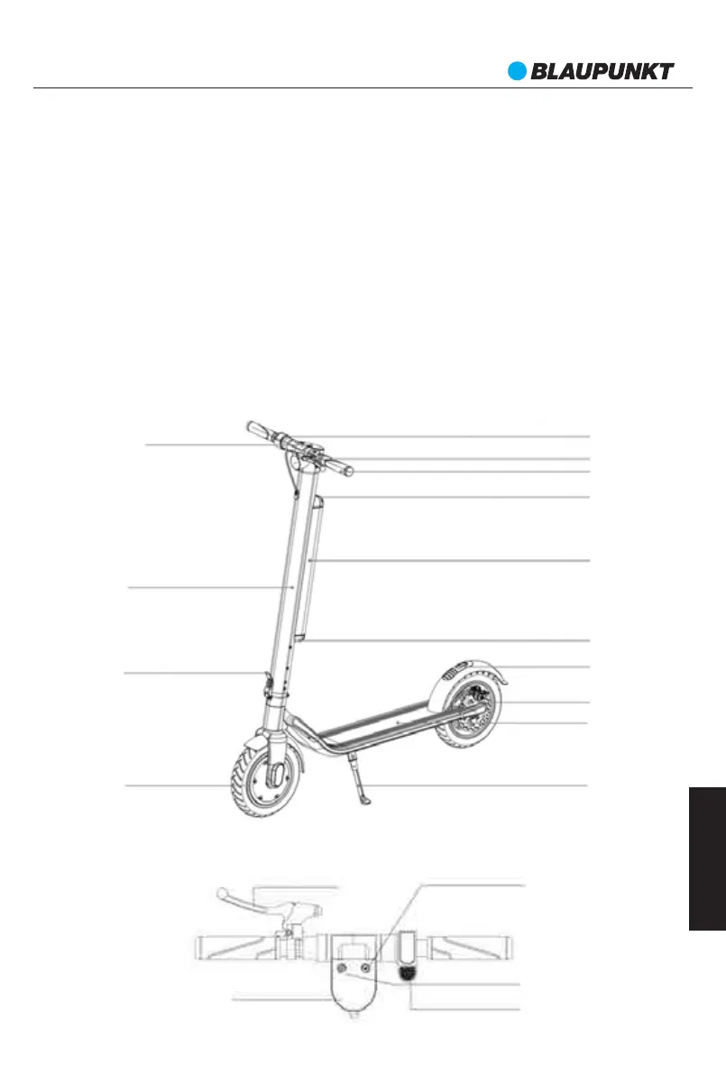 Blaupunkt ESC90X tai novatoriškas sulankstomas elektrinis paspirtukas. Naudotojas gali stovėti ant