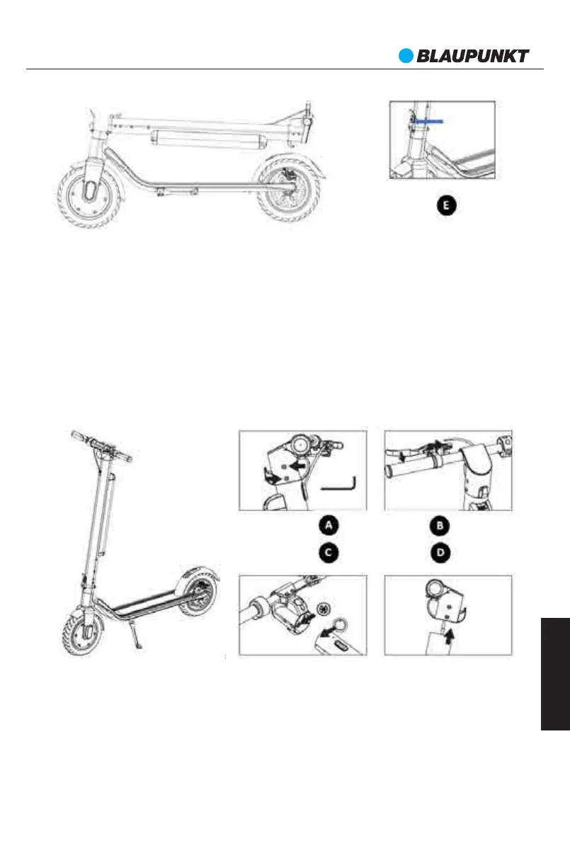 E. Norėdami pašalinti laisvumus paspirtuko sulankstymo mechanizme, veržliarakčiu sureguliuokite