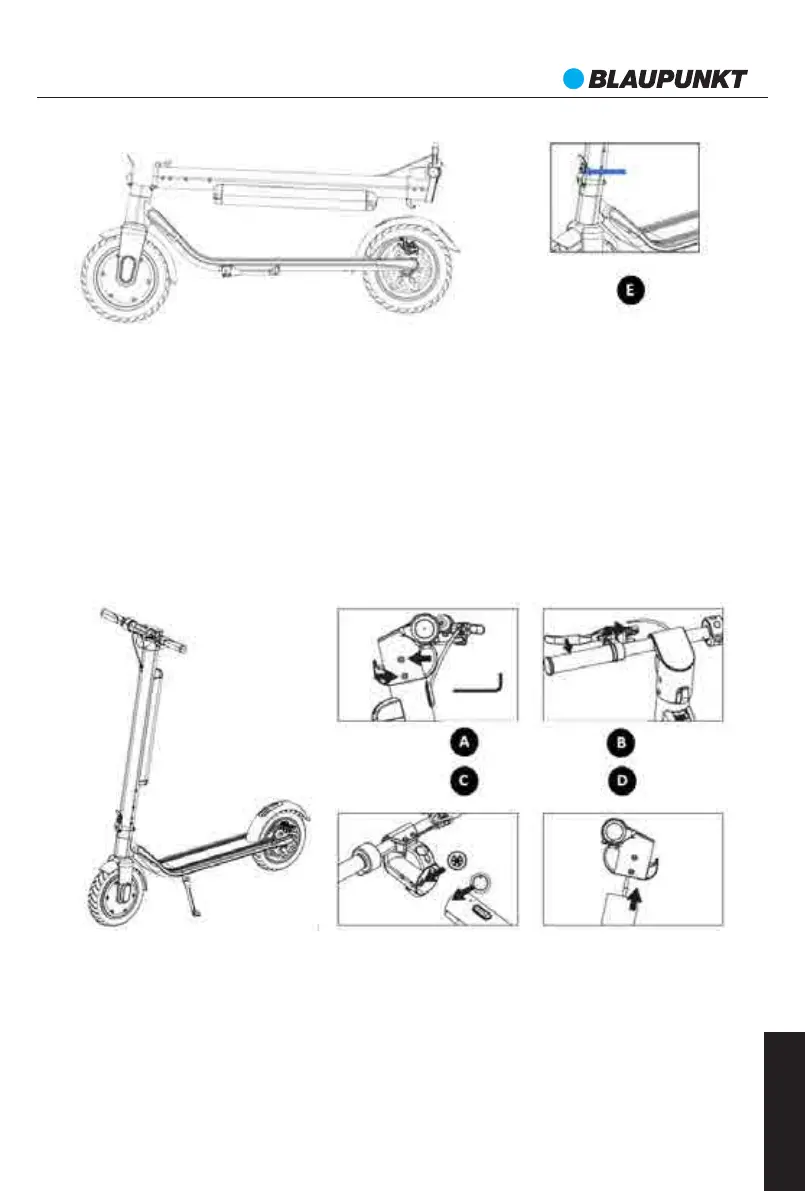 E. Lai novērstu vaļīgumu skrejriteņa salikšanas mehānismā, noregulējiet mehānisma priekšējā daļā