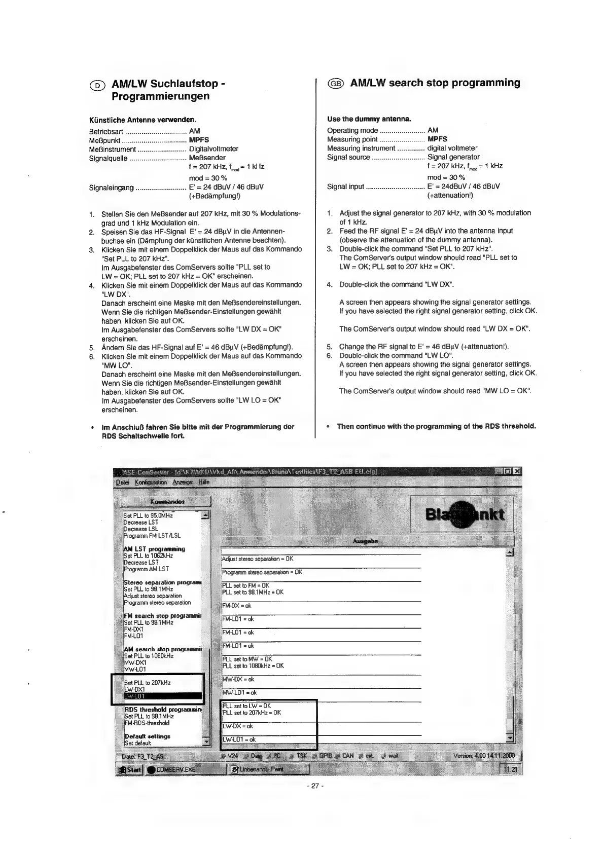 Blaupunkt Essen CD31 - AM;LW Search Stop Programming; AM;LW Search Stop Programming Steps
