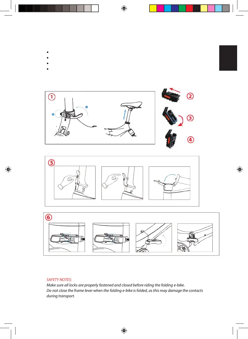 Make sure all locks are properly fastened and closed before riding the folding e-bike.