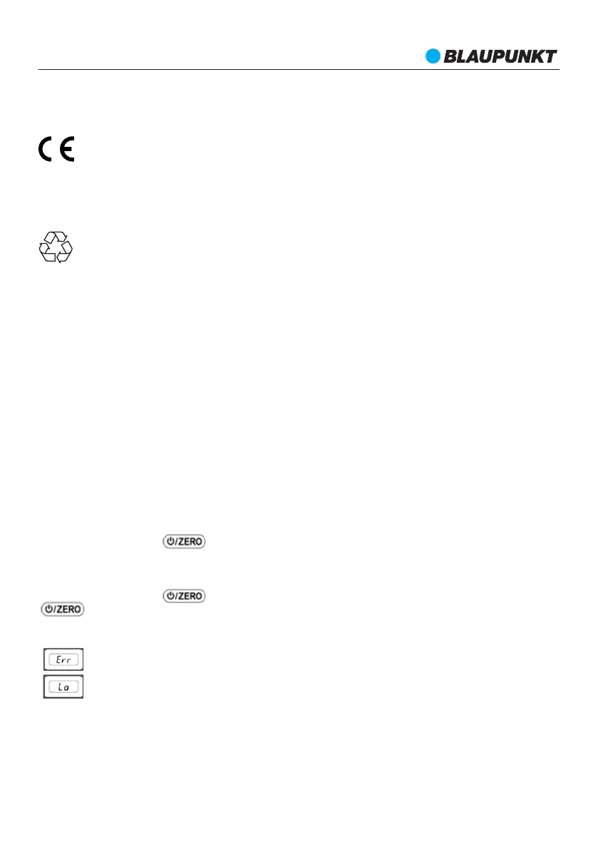 Ko se prikaže napaka, tehtnica pa se ne izklopi samodejno, je treba baterije odstraniti za več kot 5