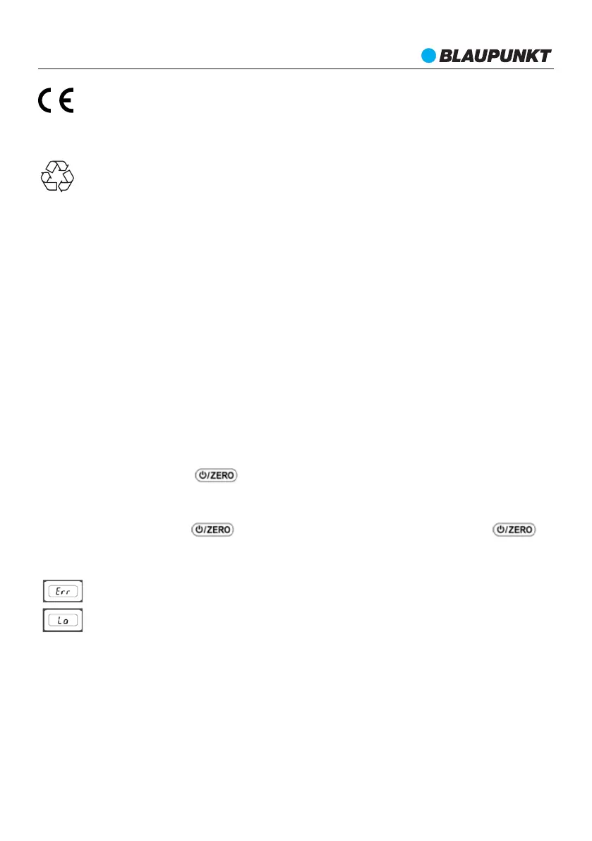 If an error is displayed and the scale does not turn off automatically after a longer time, remove the