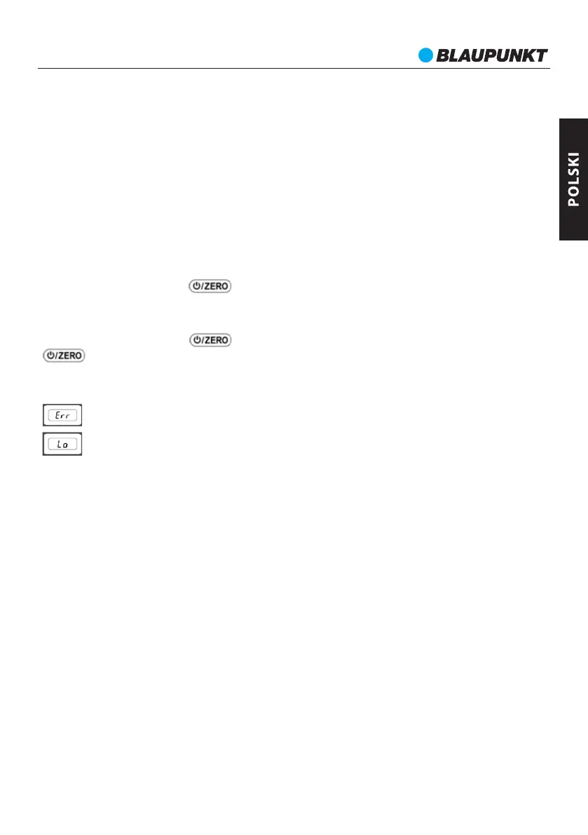 W przypadku wyświetlenia błędu, jeżeli waga nie wyłączy się automatycznie po dłuższym czasie,