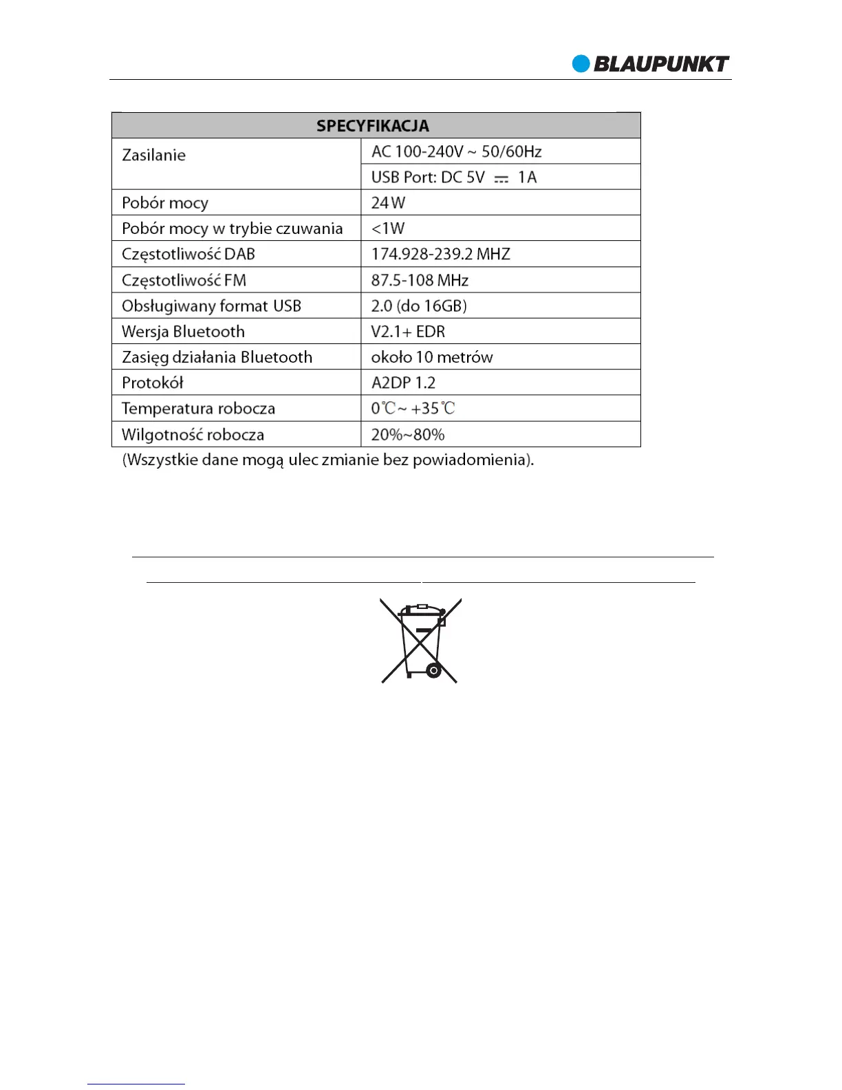 informuje, że zużytego sprzętu elektrycznego i elektronicznego nie można wyrzucać
