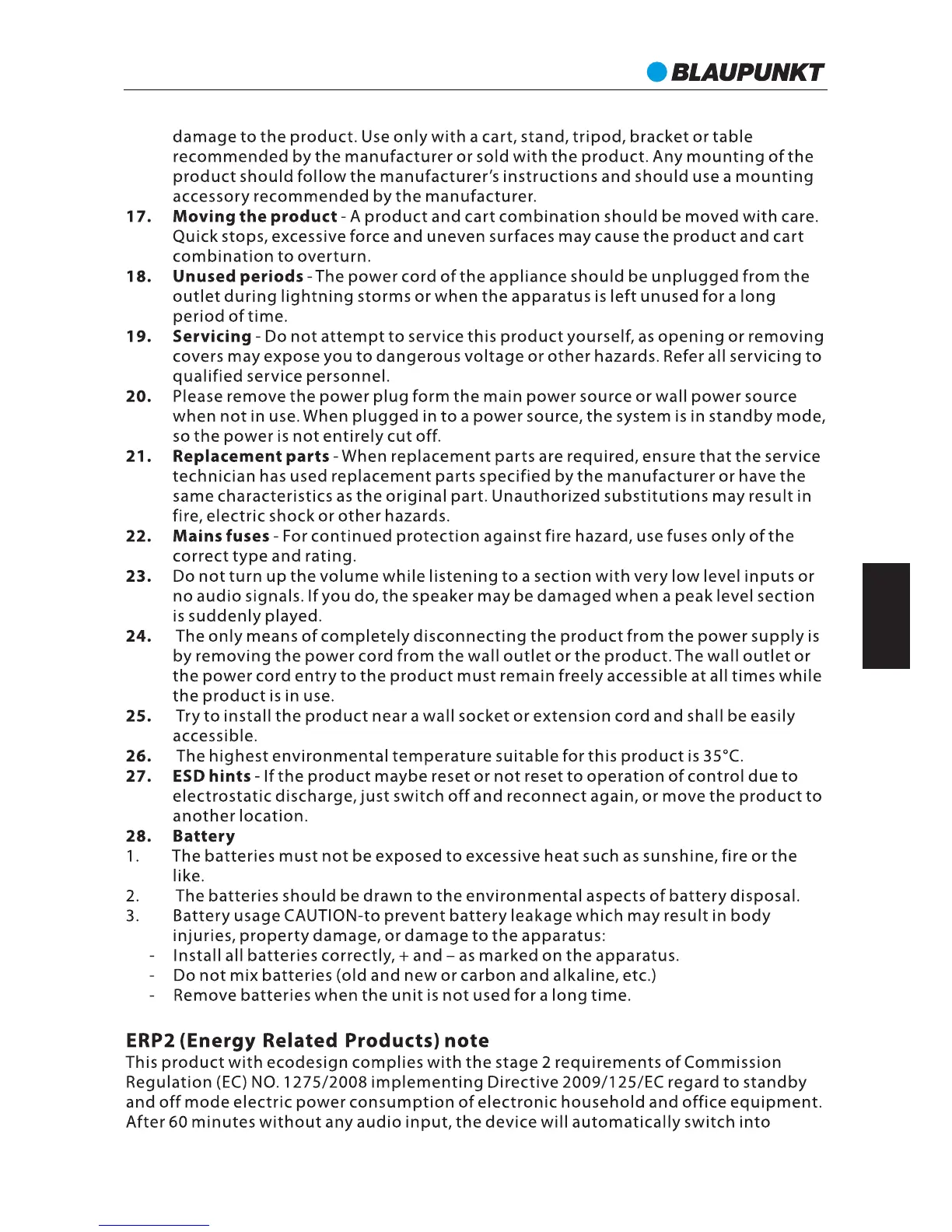 Blaupunkt HR50DAB - Operational Safety & Maintenance; Product Handling and Servicing