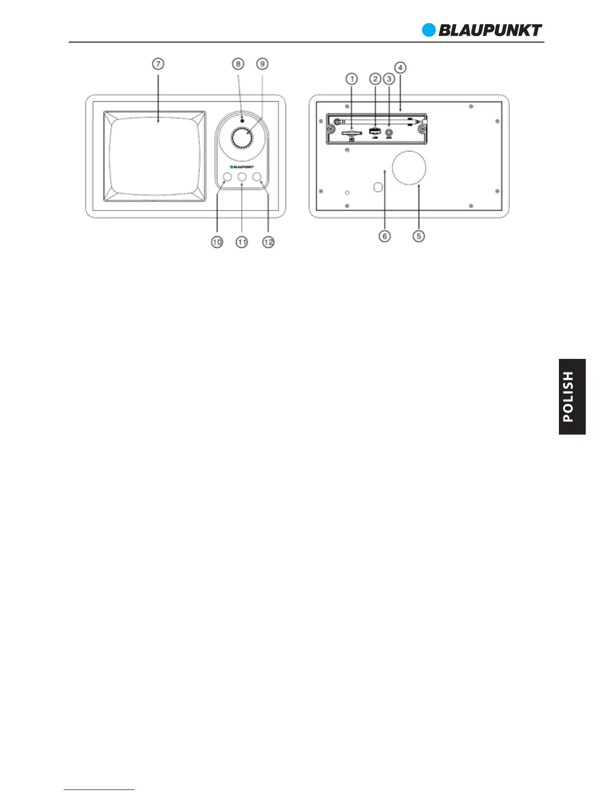 11. Przycisk regulacji głośności “-“ oraz wyboru poprzedniego utworu