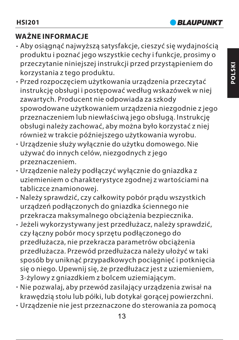 Urządzenie należy podłączyć wyłącznie do gniazdka z
