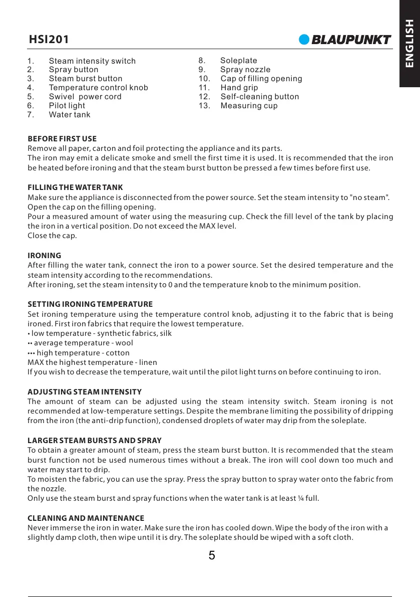 slightly damp cloth, then wipe until it is dry. The soleplate should be wiped with a soft cloth.