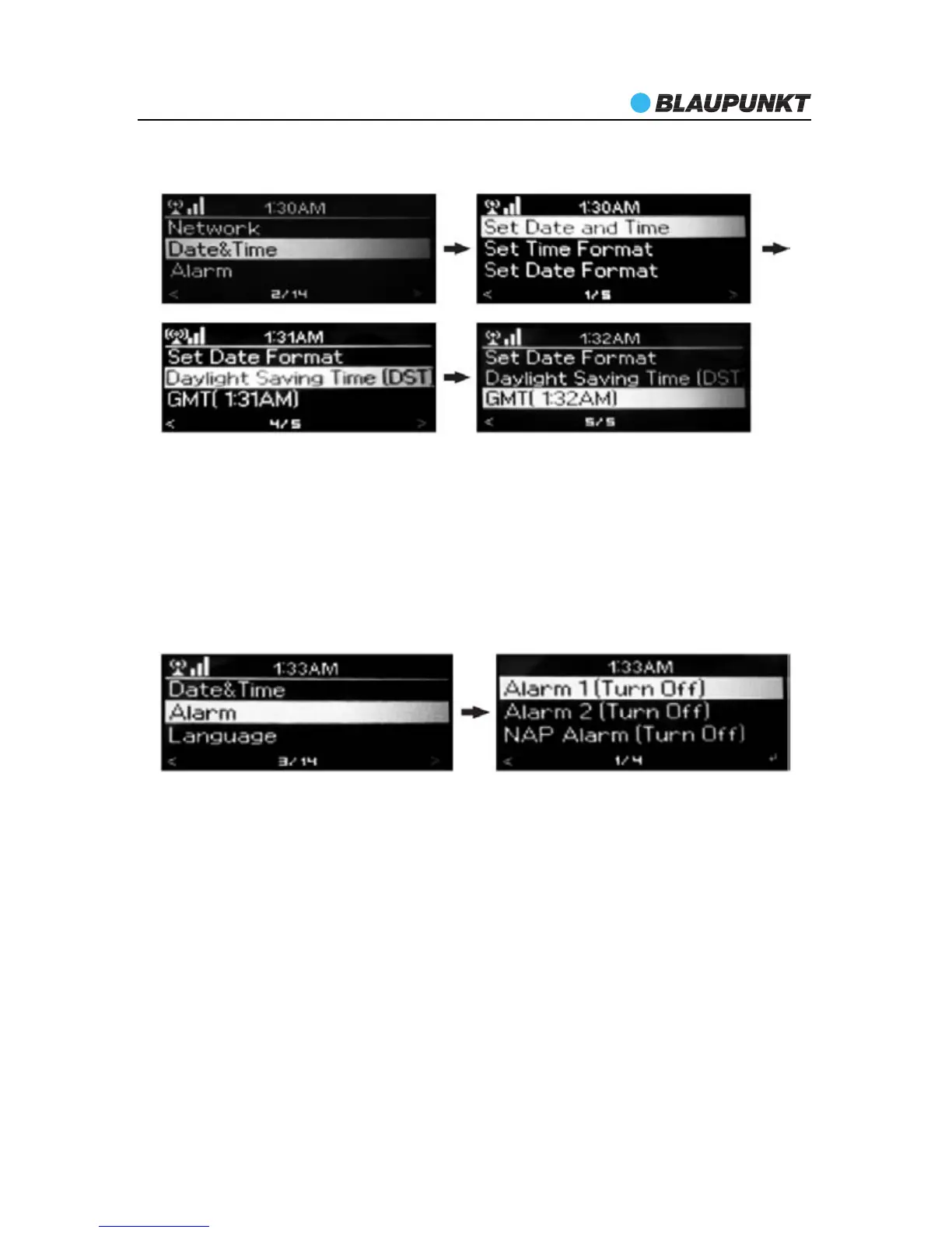 3. Sie können folgende Wecker aktivieren und einstellen: ALARM 1 (1. Wecker),