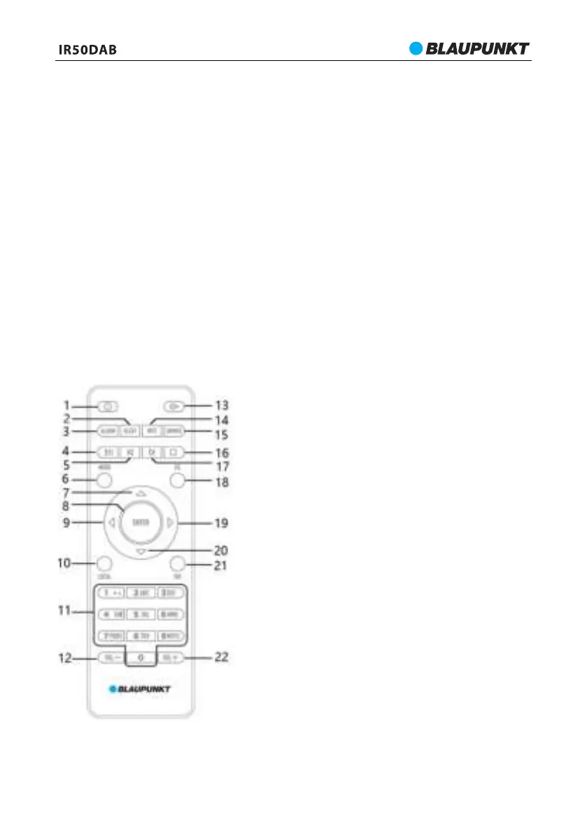 17- Przycisk następny: naciśnij krótko, aby przejść do następnego utworu w