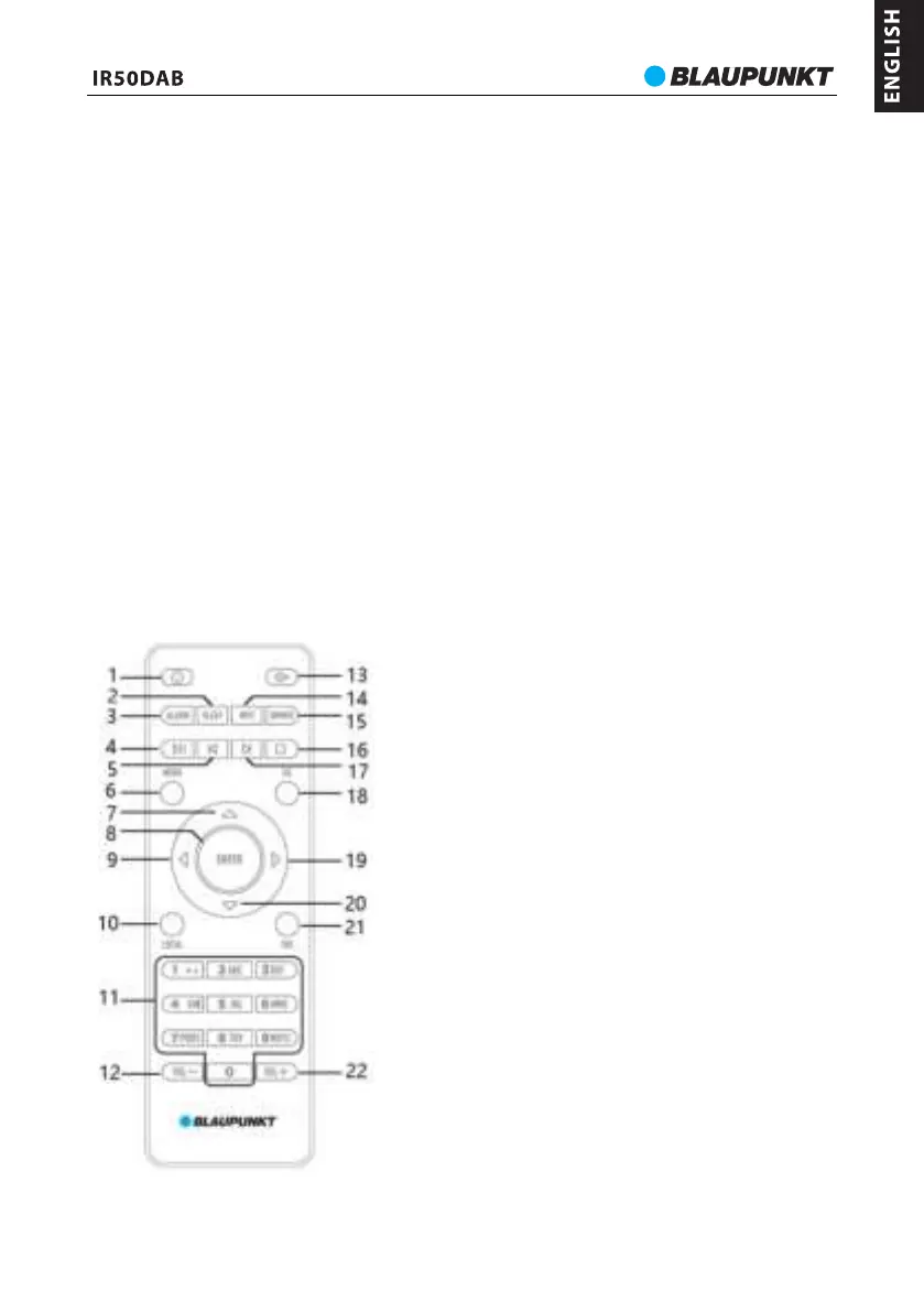 13- Mute button: press it to silence the unit, press it again to resume playback.