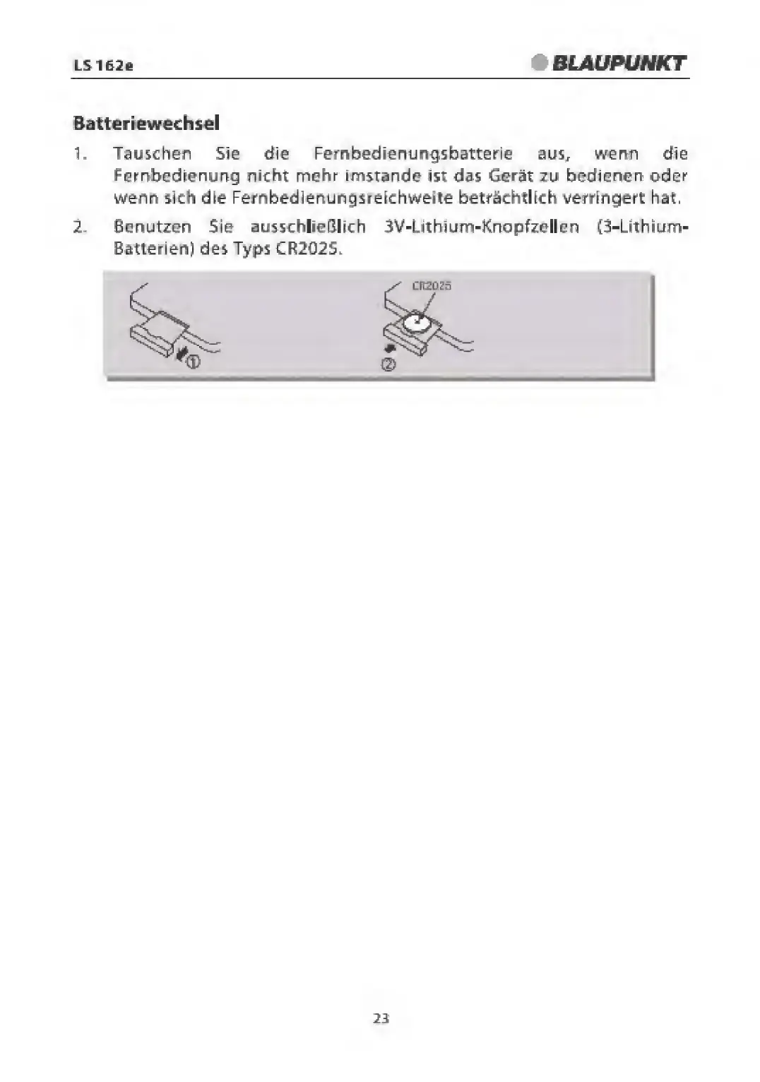 Blaupunkt LS 162e - Batteriewechsel; Ayfstcjiung des Cerates