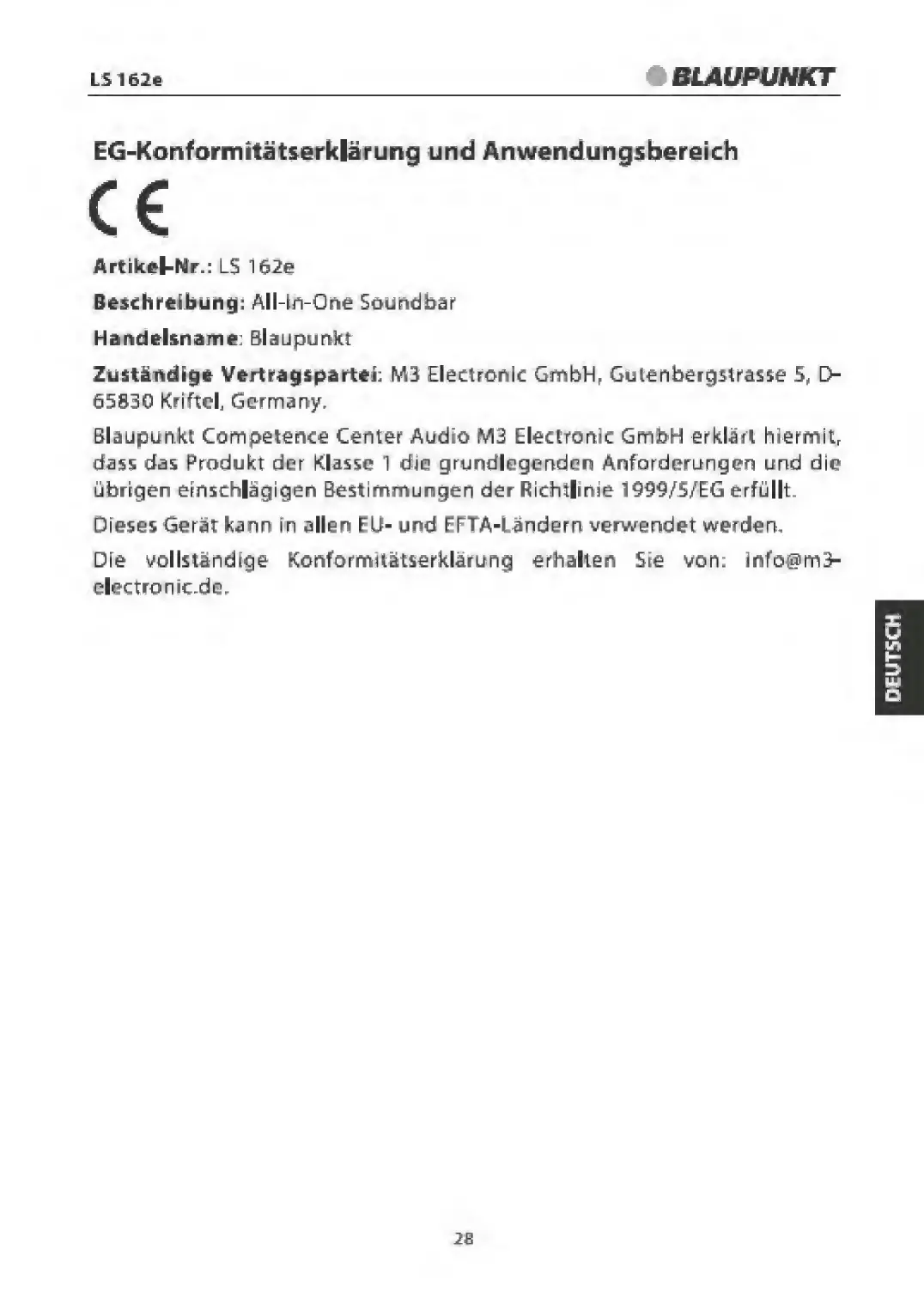 Blaupunkt LS 162e - EG-Konformitatserklarung und Anwendungsfaereich