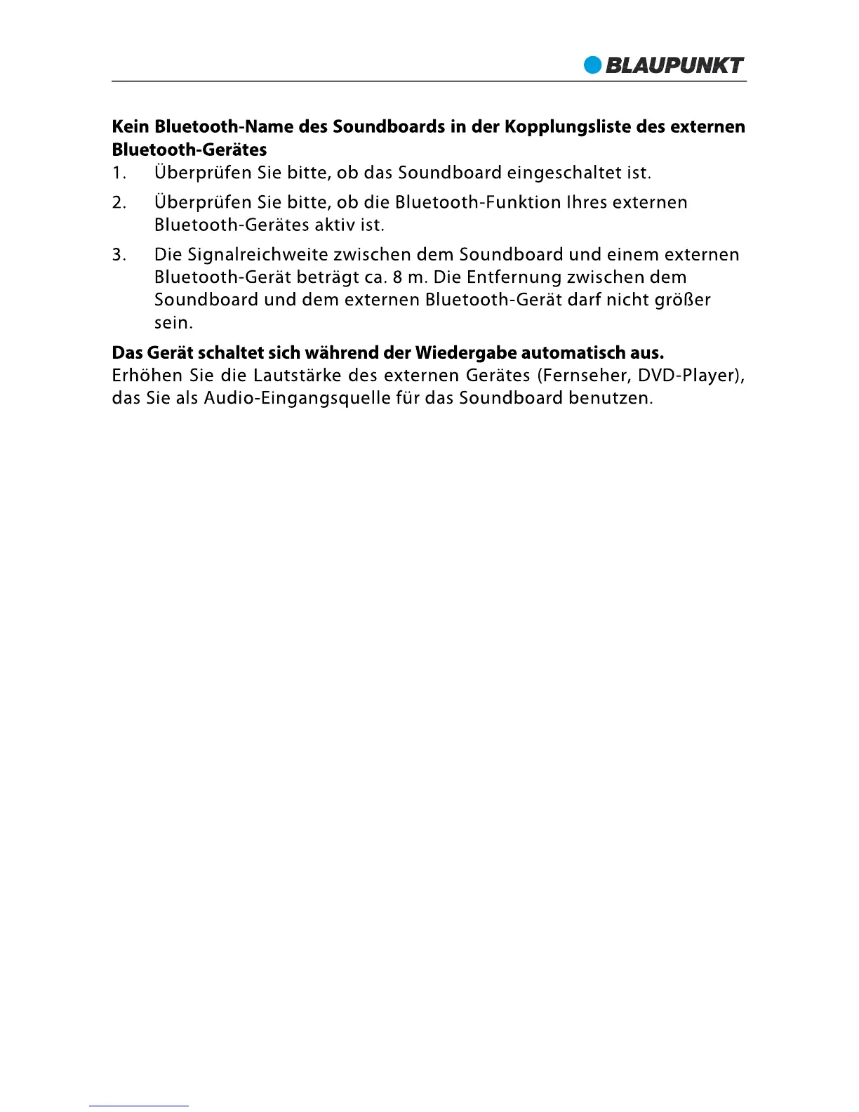 Blaupunkt LS 181 - Kein Bluetooth-Name des Soundboards in der Kopplungsliste des externen Bluetooth-Gerätes