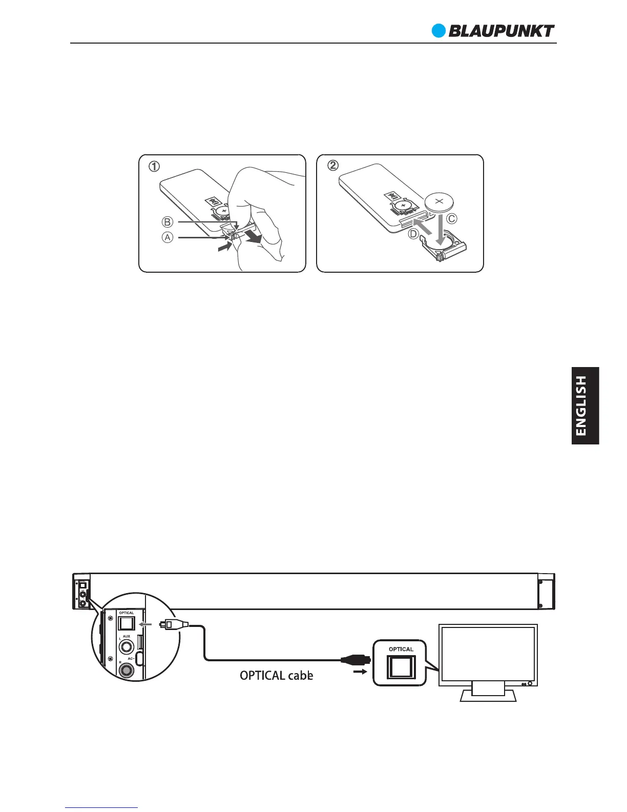 cable (not included) to the TVās OPTICAL OUT socket and the OPTICAL socket