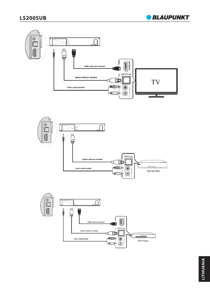 3. Garso sistemos prijungimas prie DVD arba „Blue-ray“ DVD grotuvo.