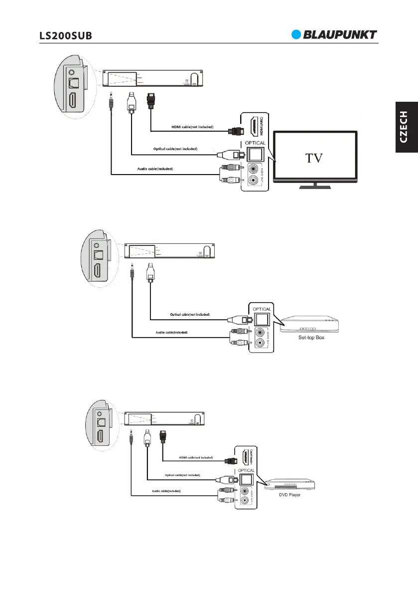 fungování vystačí soundbar připojit pouze jedním typem konektoru. Prohlédněte si níže uvedený výkres.