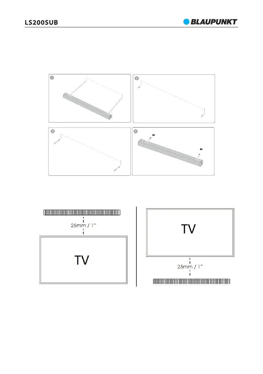 Avertizare: Dacă nu sunteți sigur cum să montați corect și în siguranță bara de sunet pe perete, vă rugăm să primiți ajutor de la