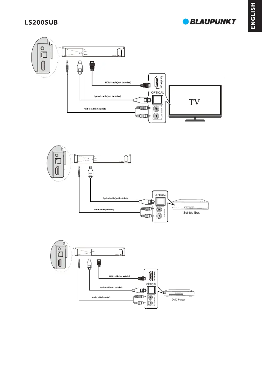 In case of output jack of your TV set-top box has, you can follow up below drawing and select AUX IN/optical connection with