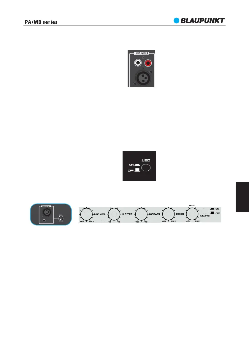 capăt conectați cu ajutorul mufei de ieșire Jack la un player extern, cum ar fi MP3, CD, DVD, mixer etc. (numai PA25 include un