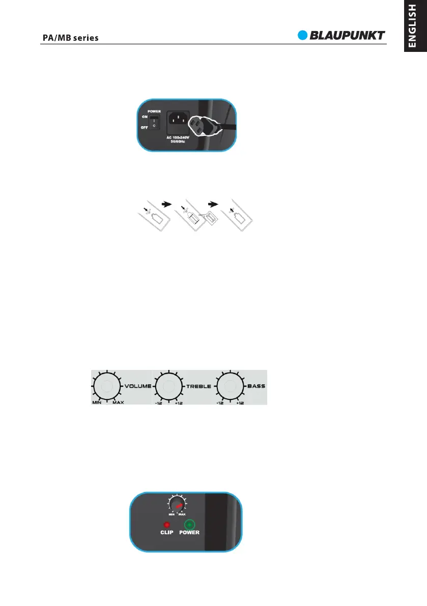 4. Treble & bass adjustment: Turn the treble/bass knob on the panel can adjust the output sound level.