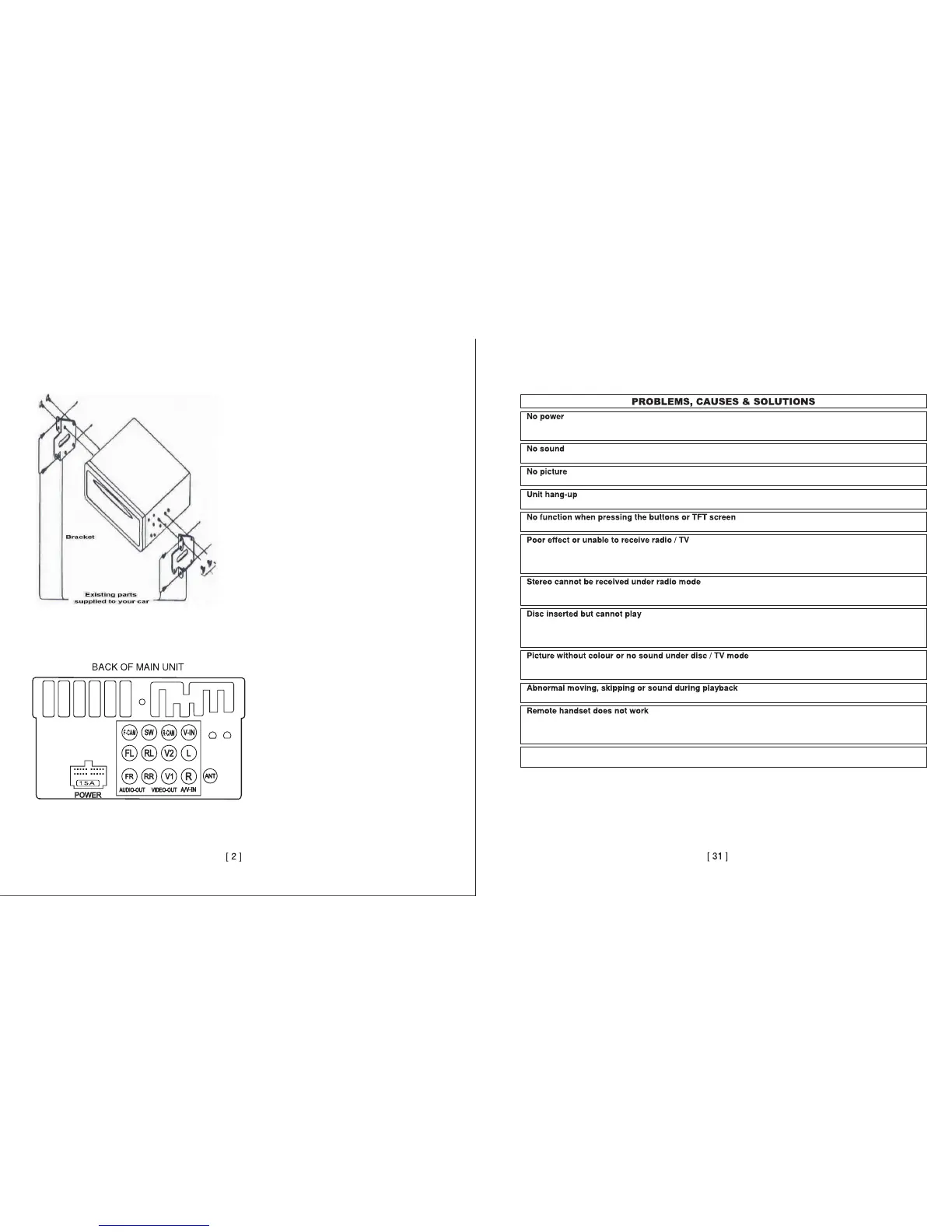 - Check whether the radio/TV antenna is inserted or properly connected.