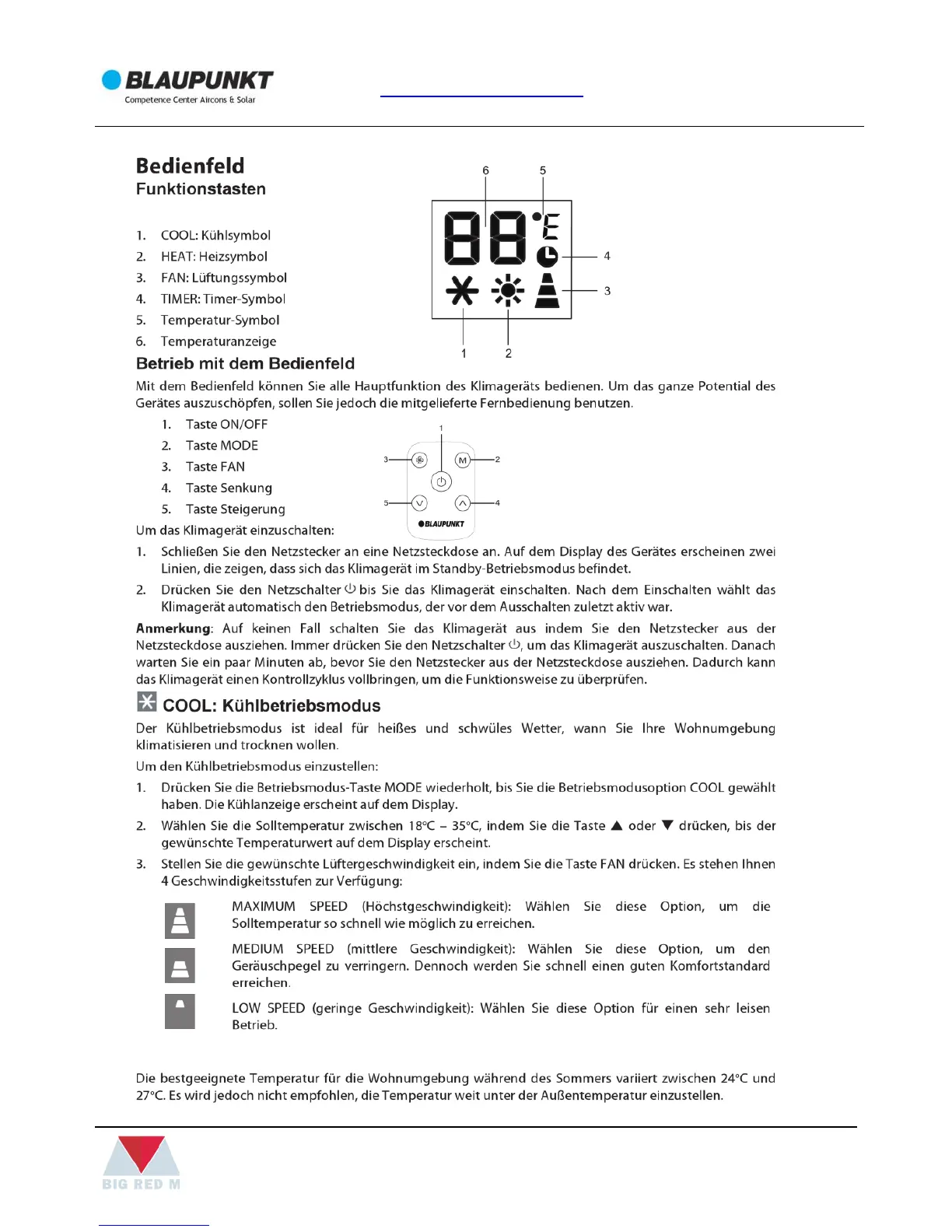 Blaupunkt Moby Blue 1012 - Bedienfeld; Betrieb mit dem Bedienfeld