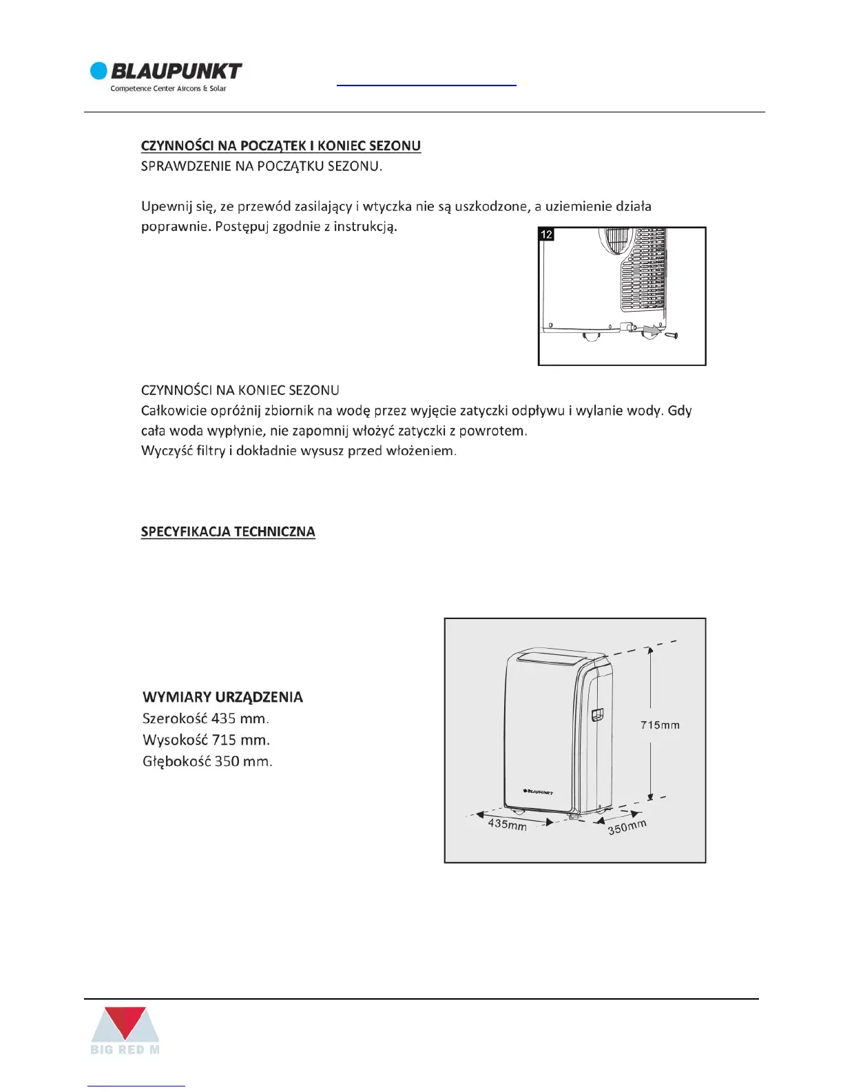 Blaupunkt Moby Blue 1012 - CzynnośCI Na Początek I Koniec Sezonu; Specyfikacja Techniczna