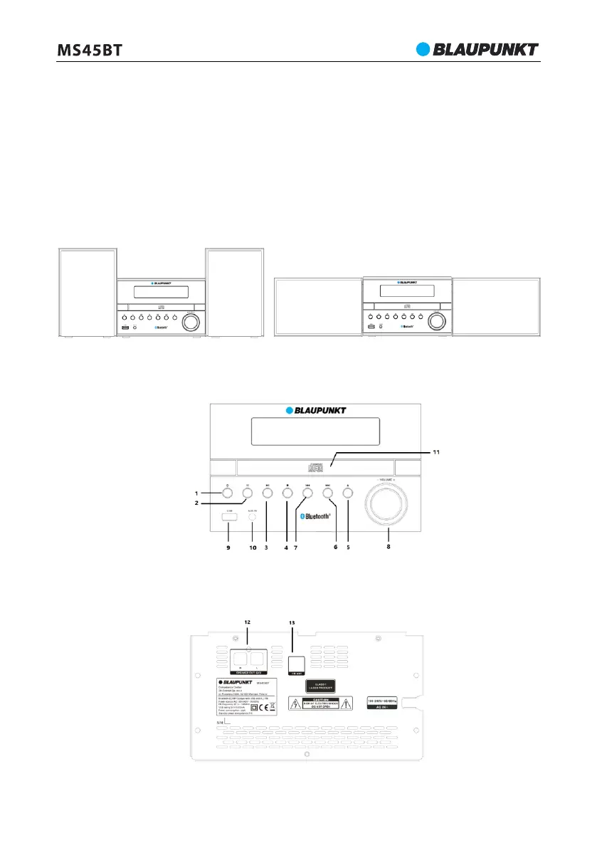 12—Złącza głośnikowe; 13—Gniazdo anteny FM.