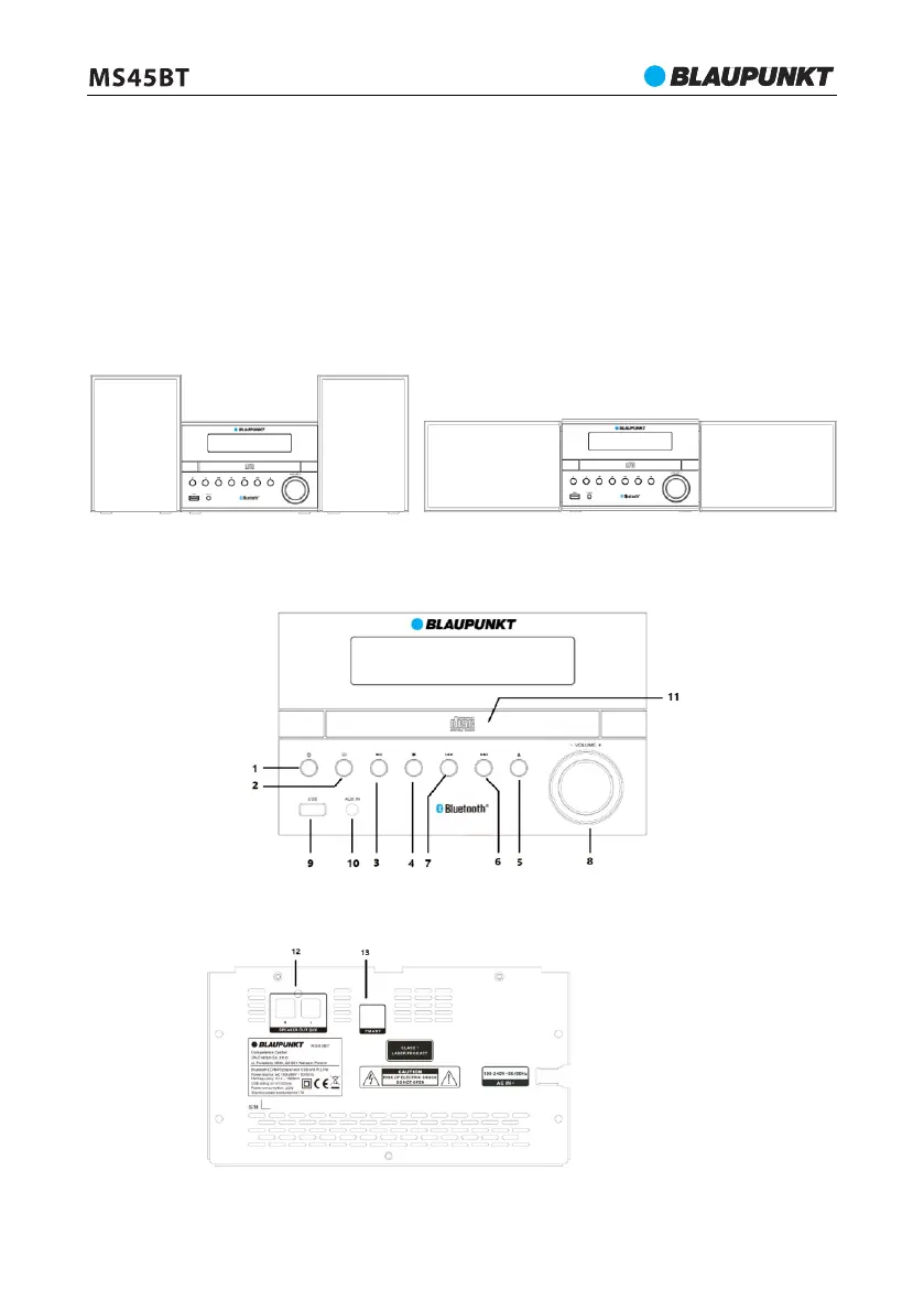6---Další, 7---Předchozí, 8---Regulátor hlasitosti, 9--- Port USB, 10---AUX IN, 11 -- Dvířka CD