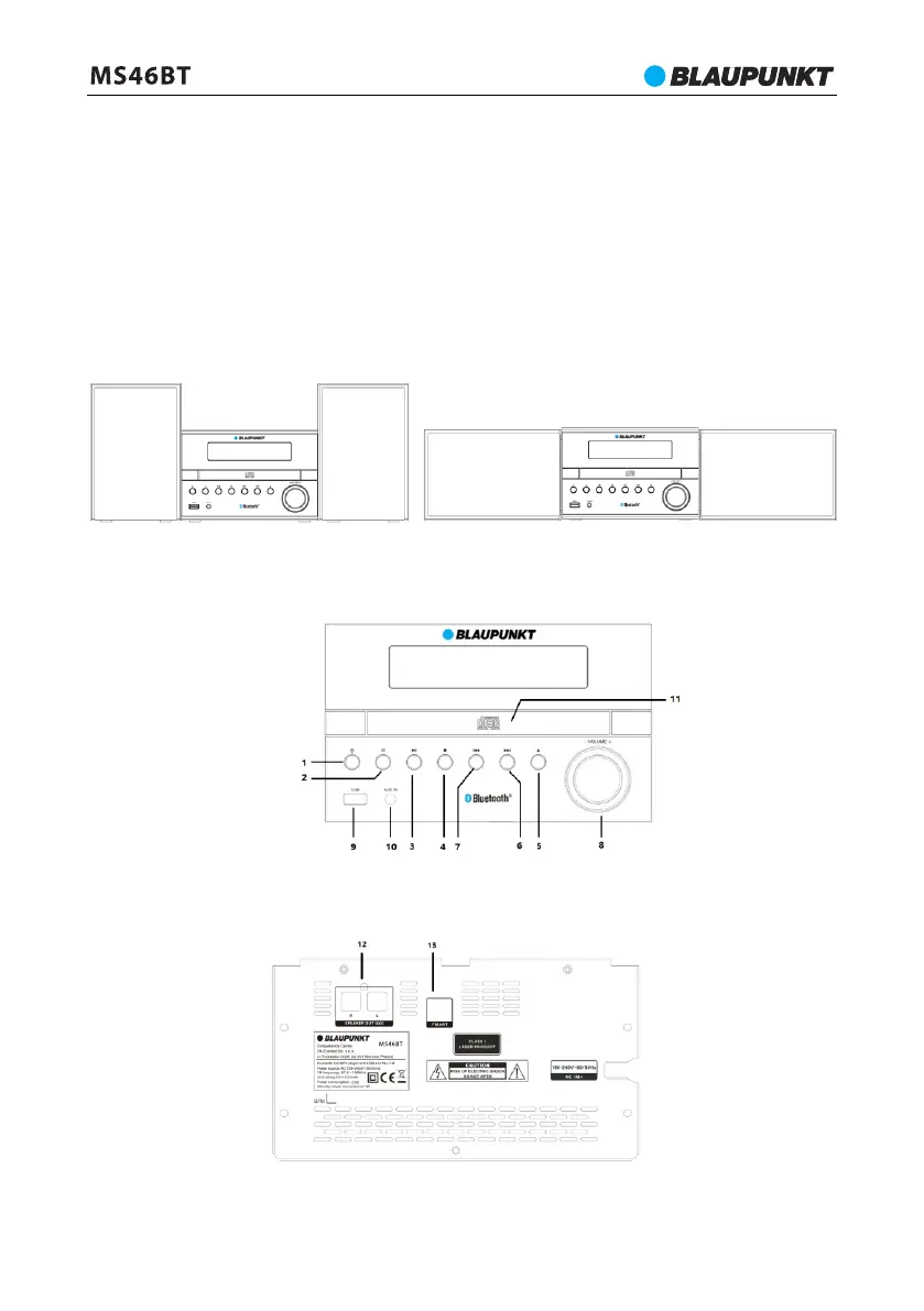 12—Złącza głośnikowe; 13—Gniazdo anteny FM.