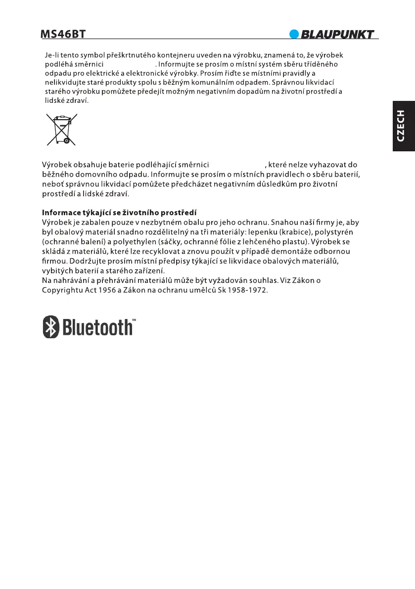 Bluetooth® název i logo jsou registrované obchodní známky společnosti Bluetooth SIG, Inc.
