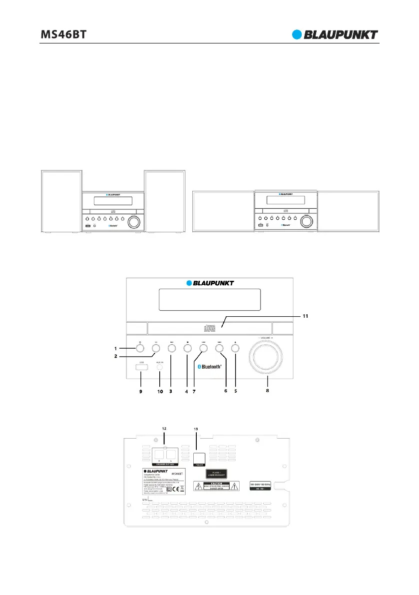 6---Další, 7---Předchozí, 8---Regulátor hlasitosti, 9--- Port USB, 10---AUX IN, 11 -- Dvířka CD