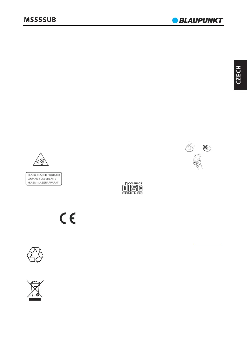 Toto označení znamená, že uvnitř zařízení jsou laserové komponenty. Otevření krytu kapsy CD a