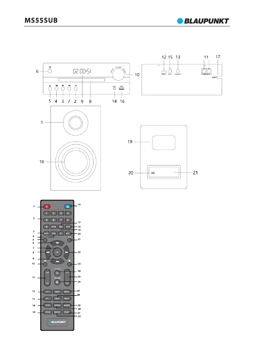 20 - Υποδοχή τροφοδοσίας AC (ασύρματο subwoofer)· 21 - Ενδεικτική λυχνία LED·