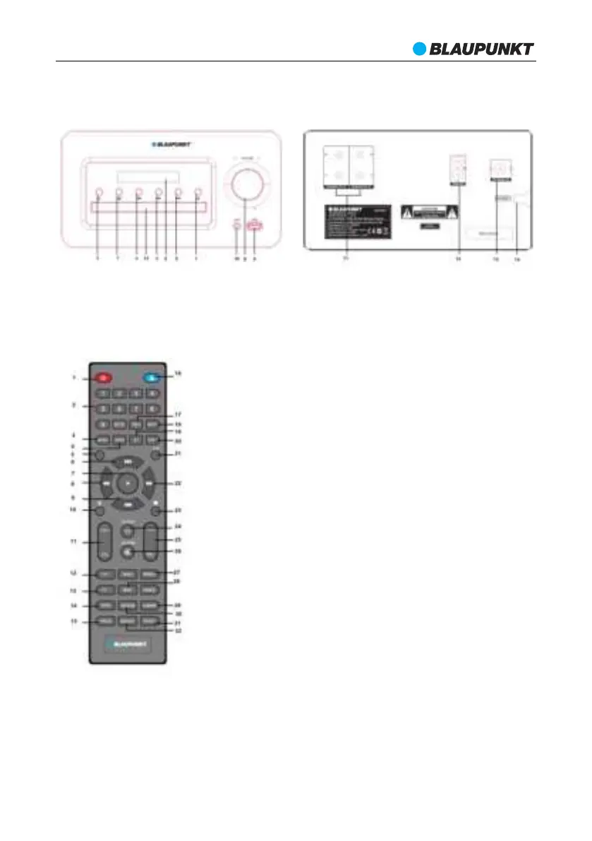 5—järgmine/ kanal +; 6—USB port; 7---allika valik; 8- helitugevuse reguleerimise pöördnupp;