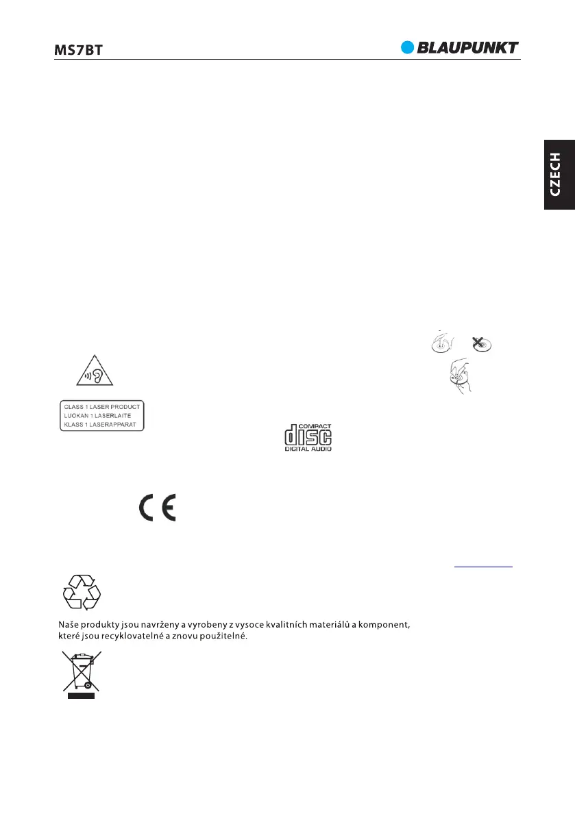 Toto označení znamená, že uvnitř zařízení jsou laserové komponenty. Otevření krytu kapsy CD a